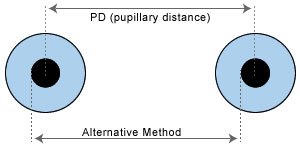 4. When the difficulty is experienced in determining the centre of the pupil, the edge of the pupil or iris may be used as a measuring point if both pupils are the same size. Measurement is read from the left side of one pupil to the left side of the other pupil.